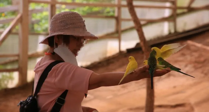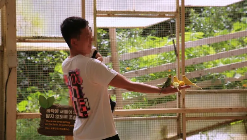 특히 새들의 정원에서는 수많은 앵무새들이 있는 새장으로 들어가 먹이를 주면서