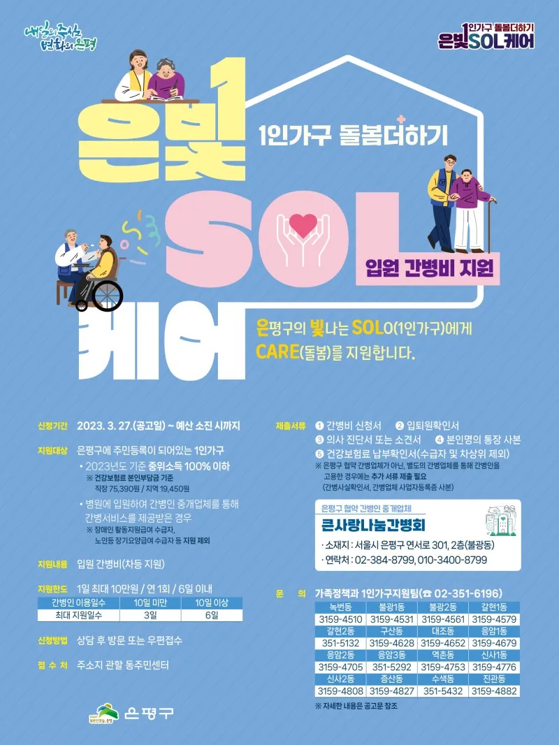 1인가구 돌봄더하기 「은빛SOL케어」 신청자 모집(3/27 ~ 예산 소진 시 까지)