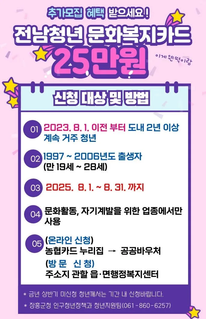 📢✨ 전남청년 문화복지카드 추가모집 ✨