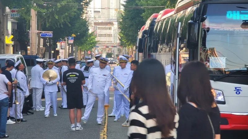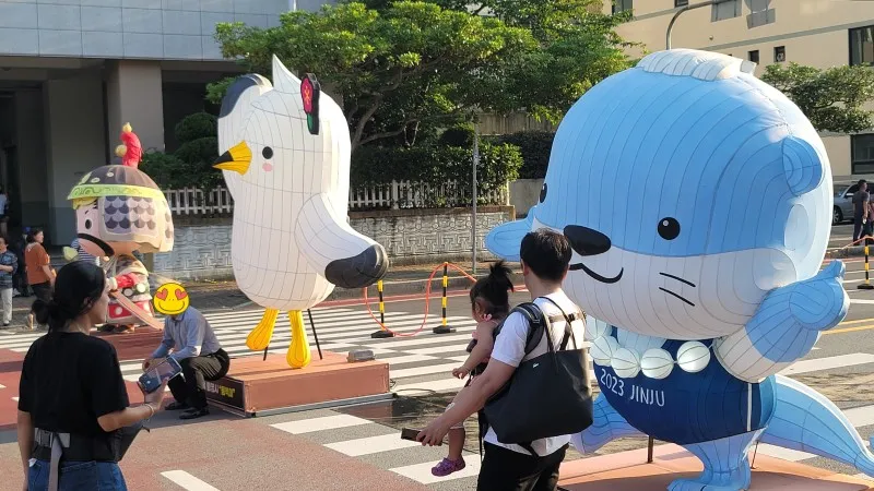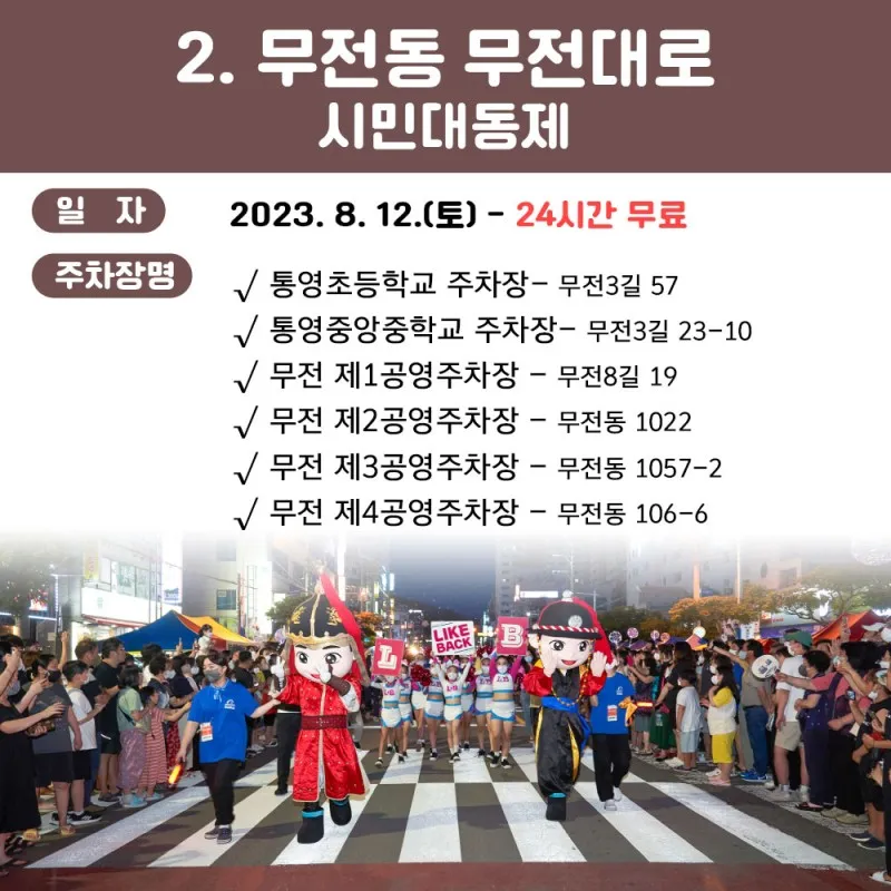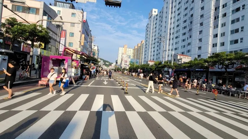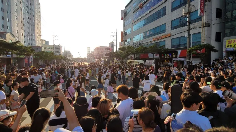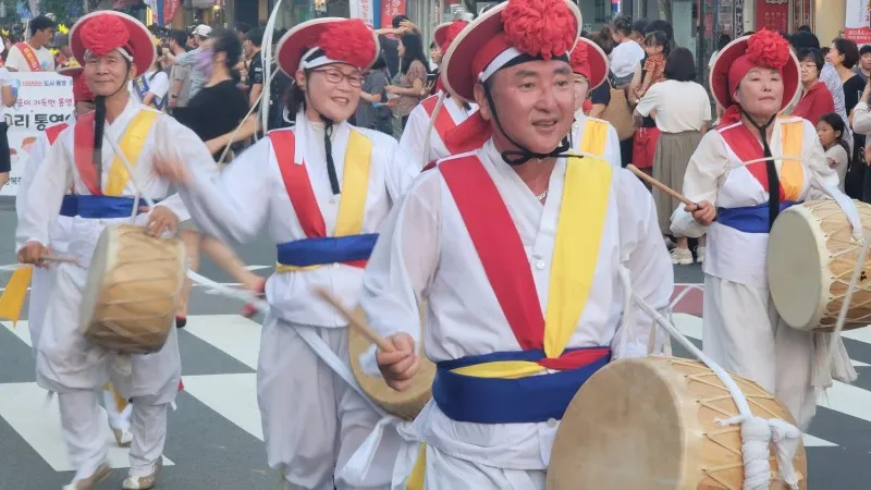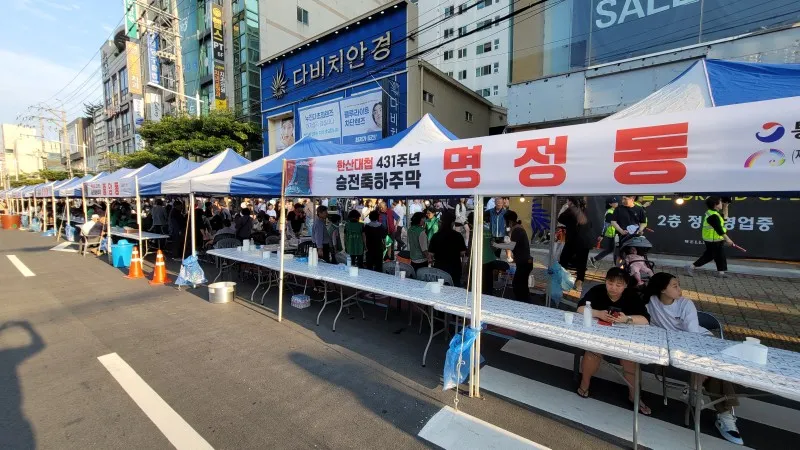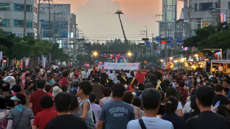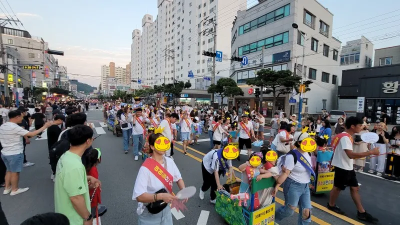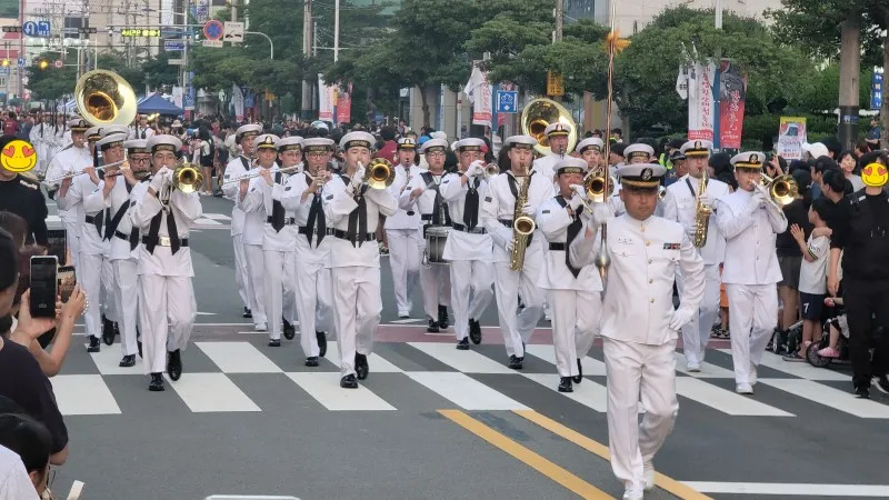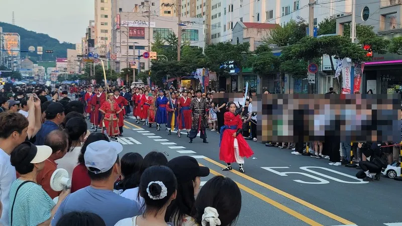 찾은 날은 축제의 마지막 날인 12일, 어둠이 밀려올 무렵 통영의 번화가인 무전동에 있는 왕복 6차선 무전대로(霧田大路)에서 행진과 시민 대동제를 구경했습니다.