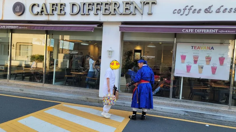 축제의 열기 속으로 향해 가는 데 오늘 퍼레이드를 빛낼 듯 조선 군사 복장을 한 사람을 보았습니다. 그러고 보니 근처 카페에서 조선 군인 복장한 일행들이 입장 순서를 기다리며 숨을 고르고 있습니다.