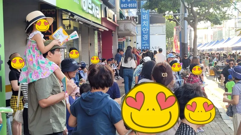 어느 부스 앞에는 뱀 꼬리처럼 기다랗게 사람들이 줄지어 행사에 참여하고 있습니다.