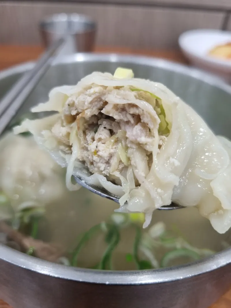 깔끔한 국물이 만두 속 재료와 잘 어우러져