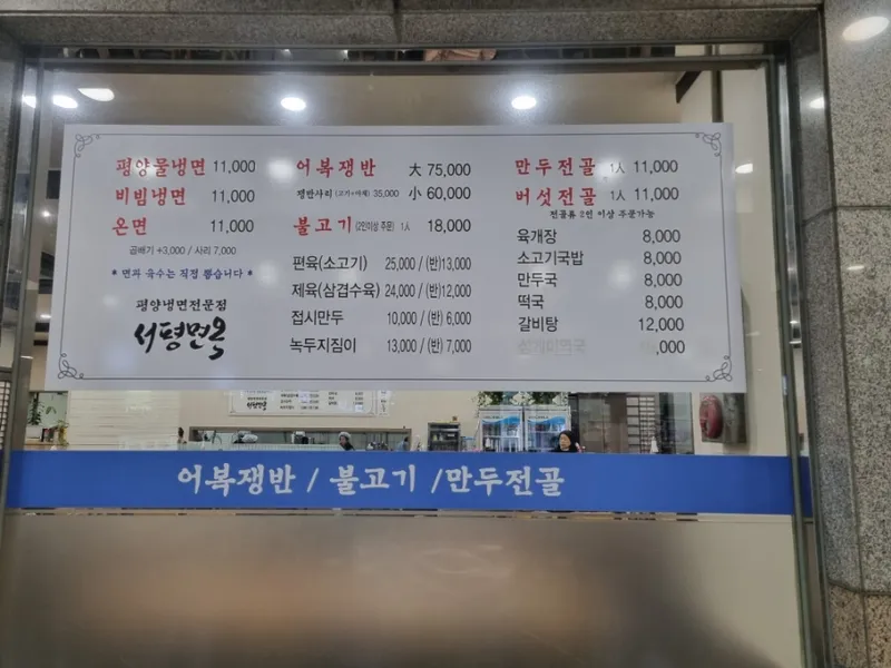 서평면옥 메뉴