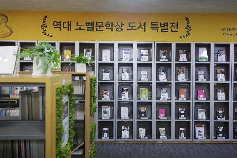 역대 노벨문학상을 수상한 작품들은 별도로 전시 공간을 만들어 진열해둔 상태입니다.