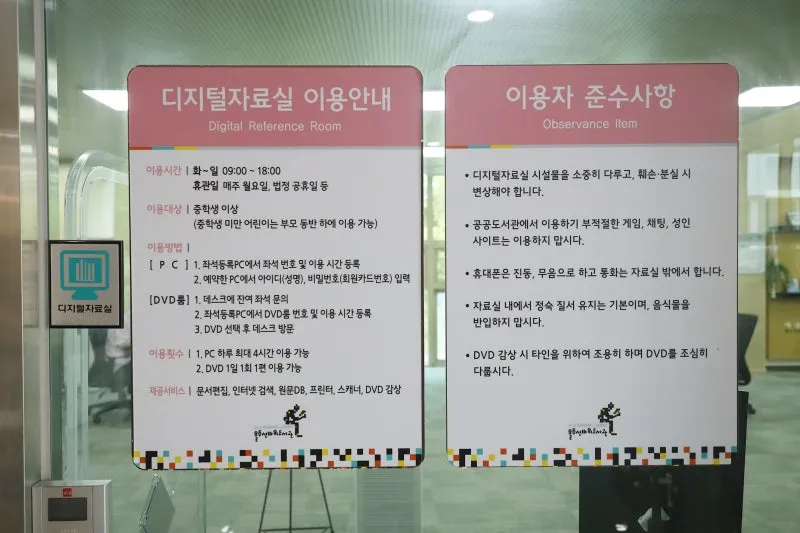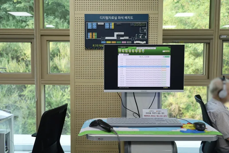 같은 층에 있는 디지털자료실은 PC를 이용하고 DVD를 감상할 수 있는 공간입니다.