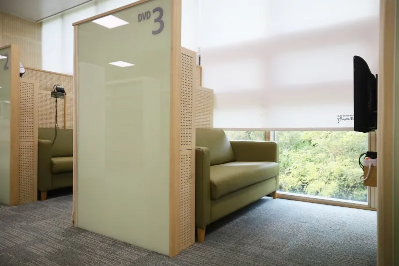 DVD는 임의로 가져가서 사용할 수 없게 되어 있으니, 보고 싶은 DVD를 선택한 후 직원의 안내를 받으시기 바랍니다.