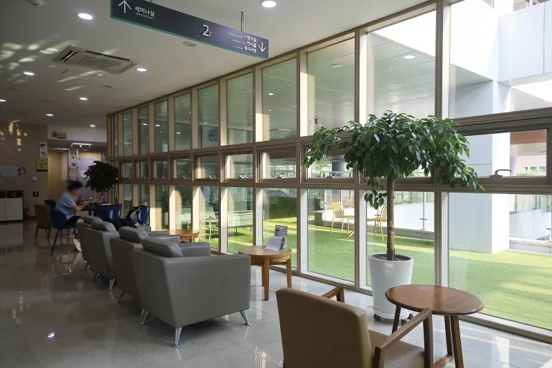 기다란 복도를 따라 의자가 설치되어 있어서 방문객들이 앉아 쉬거나 책을 읽는 모습도 볼 수 있었는데요.