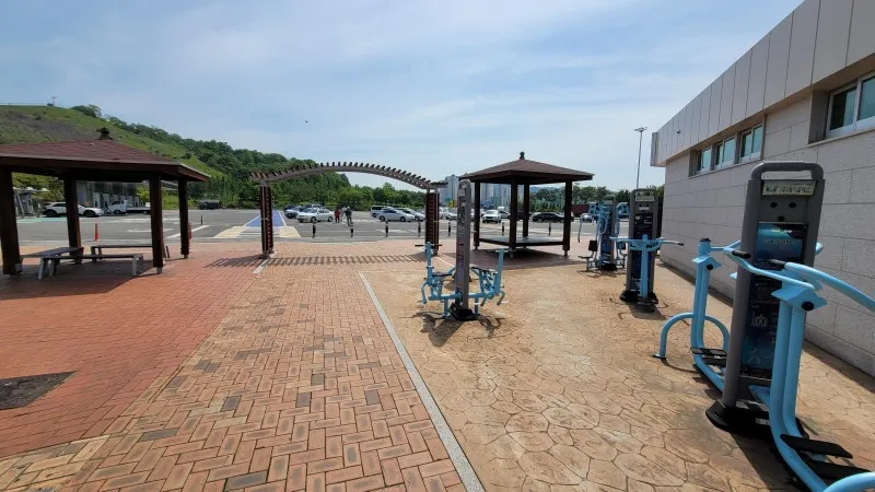 야외 헬스 기구들이 운전 등으로 딱딱하게 굳은