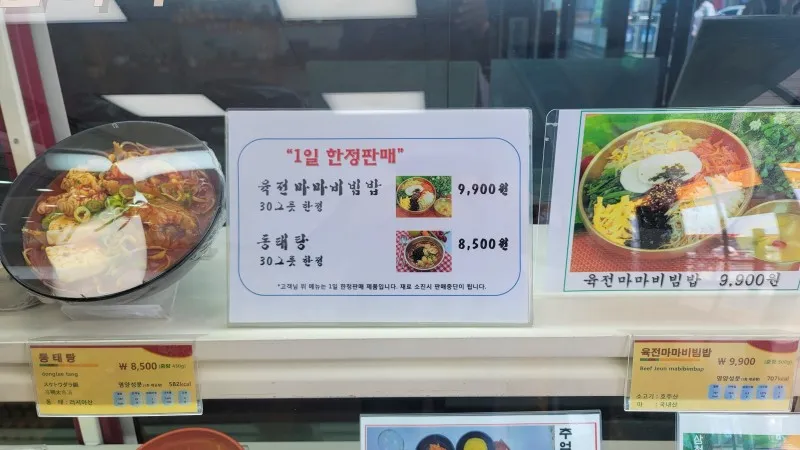 1일 한정 판매로 육전마마 비빔밥과 동태탕을 30그릇 판매합니다.