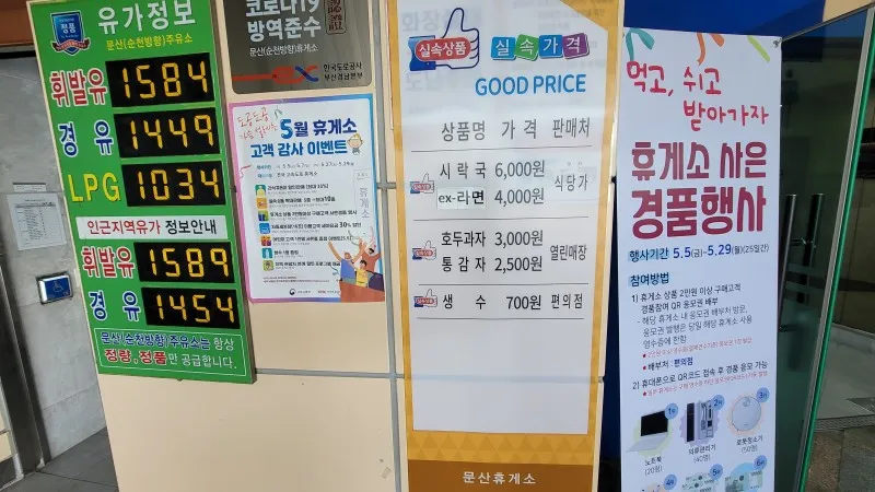 휴게소 안에는 다양한 먹거리가 있습니다.