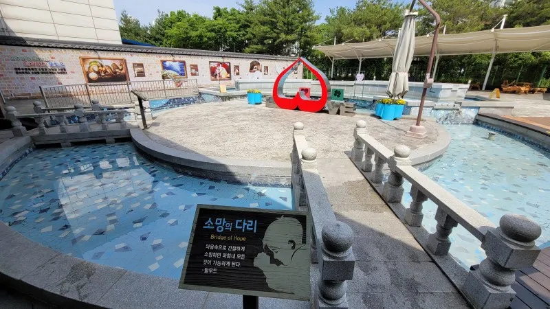 <소망의 다리>를 건너면 하트 모양의 벤치가 나옵니다.
