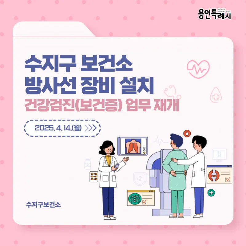 [용인소식] 수지구보건소 방사선장비 설치에 따른 건강검진(보건증) 등 업무 재개