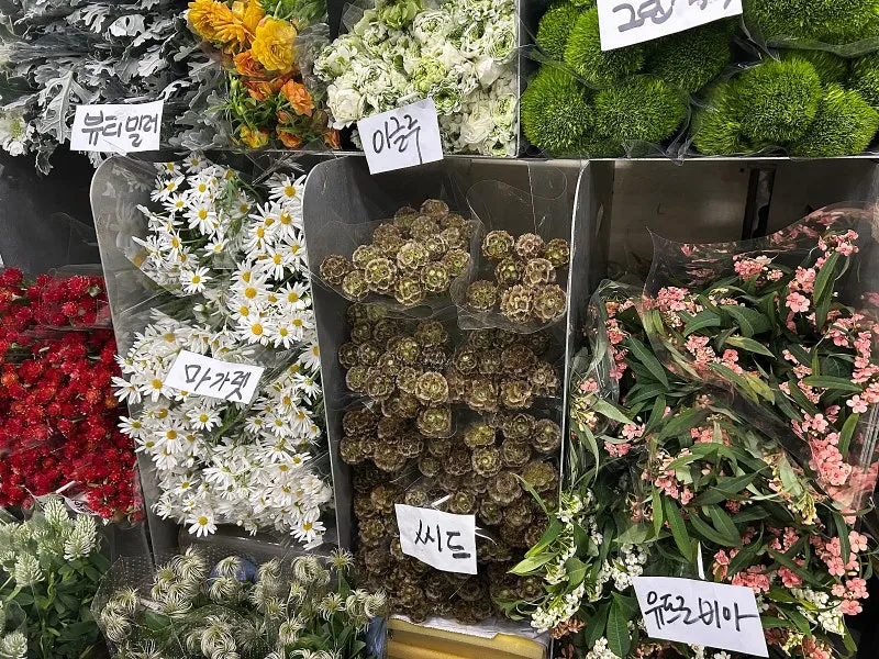어떤 날은 생화 시장도 들려서 꽃도 구매했는데