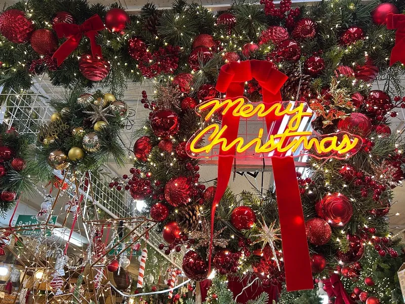 입구부터 크리스마스 소품들이 잔뜩 진열되어 있어,