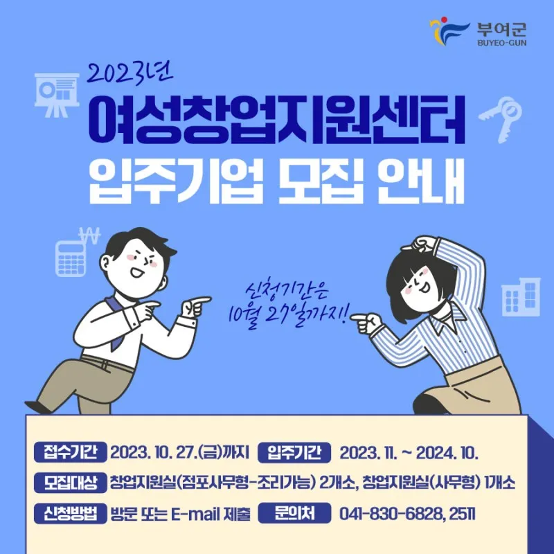 2023년 부여군 여성창업지원센터 입주기업 모집 안내