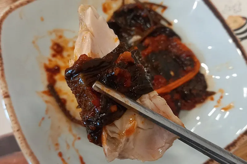 쫄깃한 전북을 작게 잘라 꼭꼭 씹어 드세요.