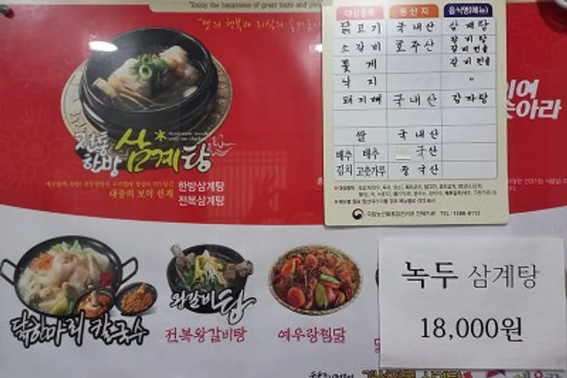 삼계탕 외에도 갈비탕, 닭 한 마리 칼국수 등