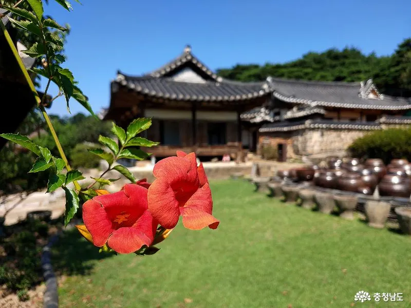 능소화 옆에는 이렇게 장독대와 함께 초가집, 노서서재와 사랑채가 자리하고 있는데요.