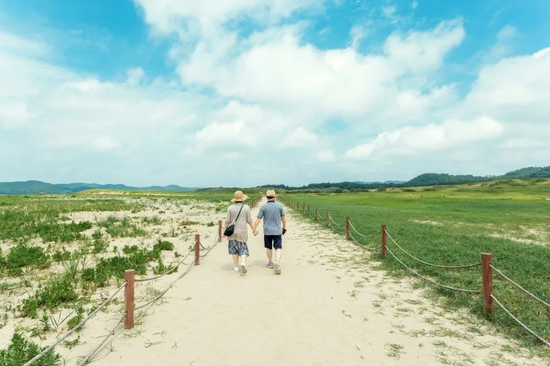 마지막으로 만나볼 태안 가을 여행지는 해안선을 따라 펼쳐지는 거대한 모래언덕! 이국적인 사막의 정취를 느낄 수 있는 신두리 해안사구입니다. 오랜 세월 동안 바람에 날려온 고운 모래가 쌓이고 쌓여 만들어진 우리나라 최대 규모의 해안사구로 태안에서 꼭 가봐야 하는 가을 여행지랍니다.