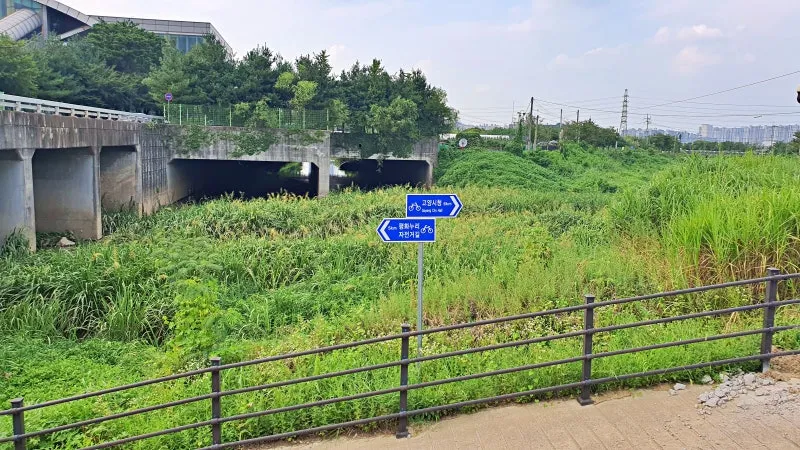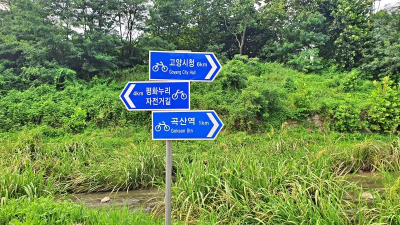 곡산역 근처 도촌천에는 자전거길이 지나고 있습니다. 하천을 따라 자전거를 타기에 아주 잘 정비된 모습이었습니다. 이 자전거길을 쭉 따라가다 보면 평화누리 자전거길에 도달할 수가 있는데요. 고양 평화누리 자전거길은 행주산성 역사공원에서 출발해 1시간 40분간 강변을 달려 파주출판도시 휴게소까지 도착하는 코스입니다.