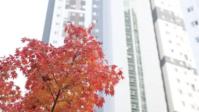 도심 건물과 가을 풍경이 겹치는 근사한 거리샷