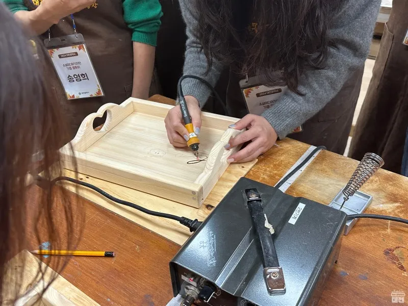 팸투어는 (Familiarization Tour)의 줄임말로 친숙하고 익숙하게 관광지를 안내하고 홍보하는 역할을 하는 것으로 사전답사 여행입니다. 20명의 기자단과 팸투어 일정을 함께 했습니다. 대전 목재 문화체험장, 대전팜 동구나무, 장태산 자연휴양림을 방문하는 일정이었는데요. 함께한 프로그램 중에 대전 목재 문화체험장 하트 트레이 만들기를 체험 모습을 한번 보실까요?