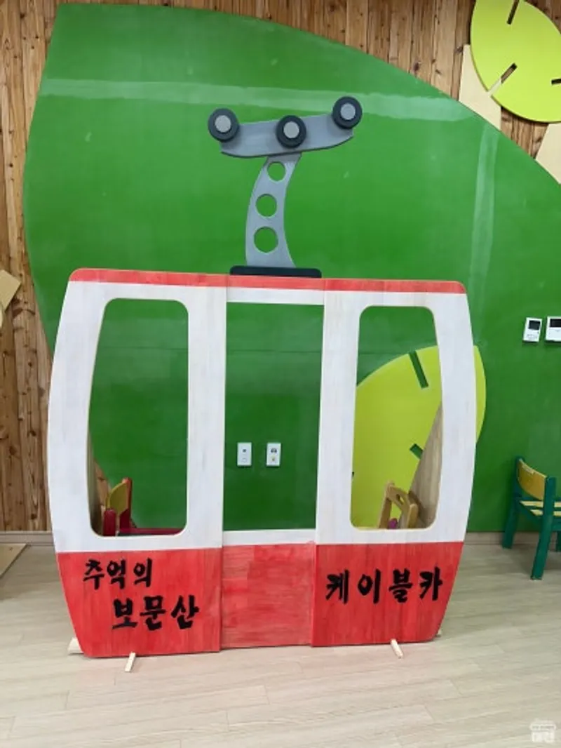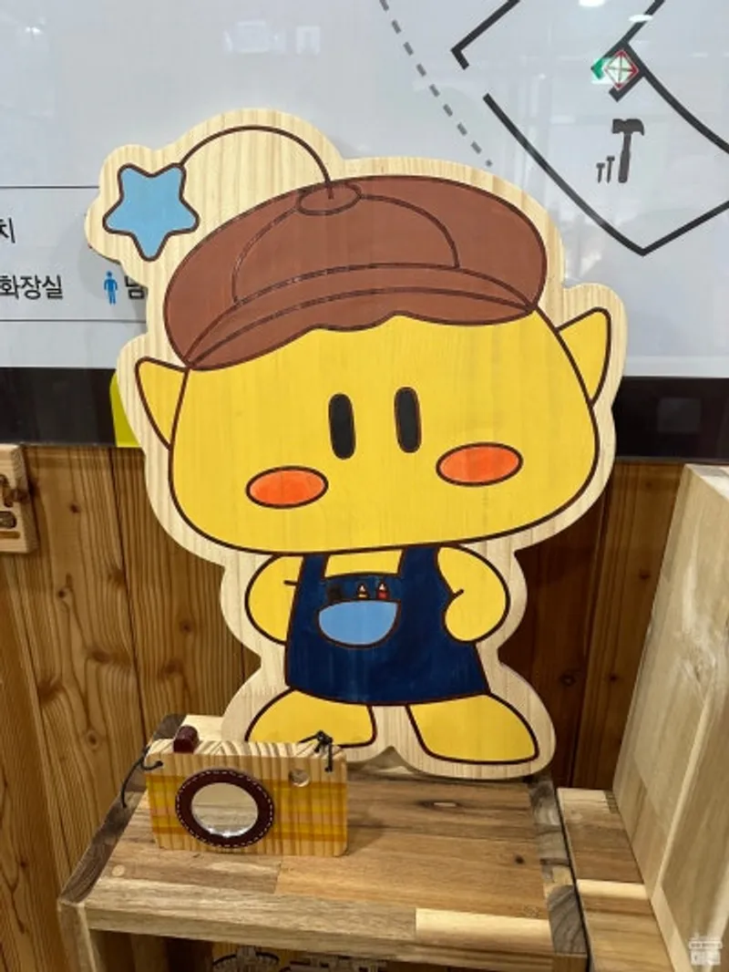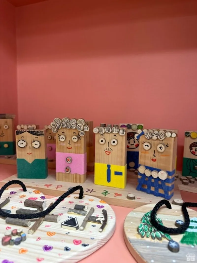 중급반 작업실 옆에는 아이들이 작업하는 공간이 있습니다. 아이들의 눈높이에 맞게 나무로 만든 꿈돌이, 꿈순이와 한빛탑, 우리 가족 모습을 나무로 만든 아이들의 작품이 전시되어 있습니다.