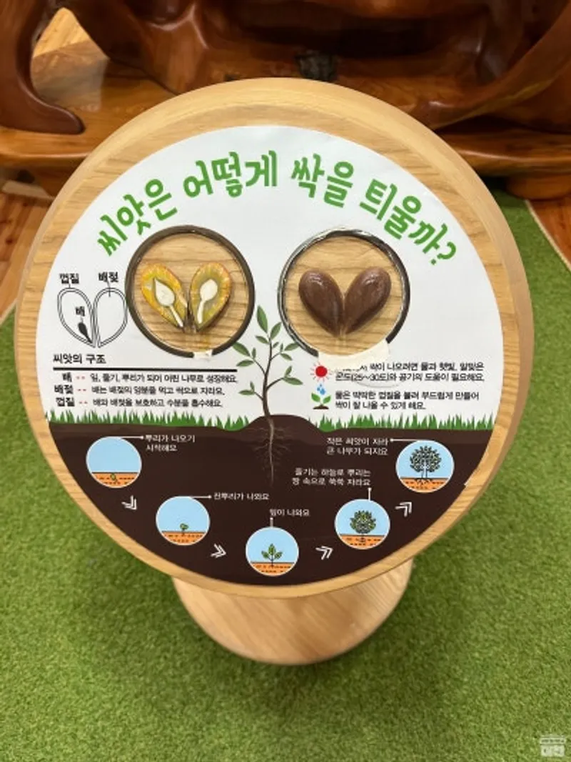 대전 목재 문화체험장 1층에는 영상체험실이 있습니다. 월별 주제로 나무와 관련된 동화 속 나무 이야기, 천연기념물, 씨앗이 싹이 트는 방법이 시각적 자료로 알기 쉽게 전시되어 있습니다.