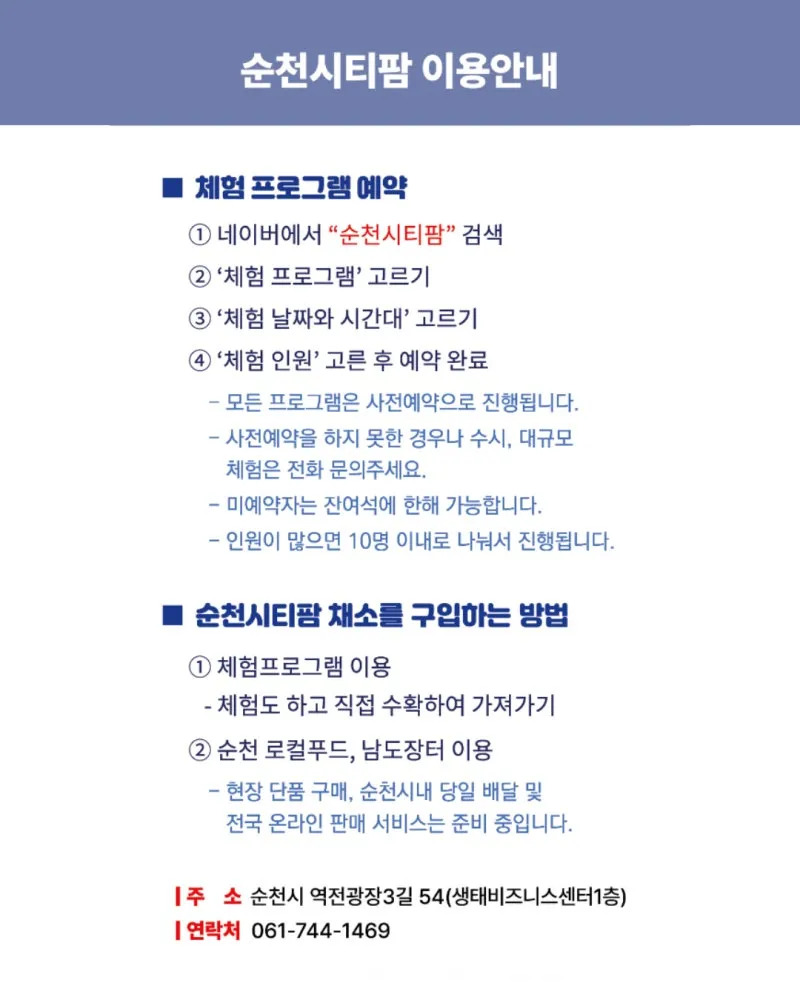 📌 네이버 밴드 ‘순천시티팜’ 에 가입하시면