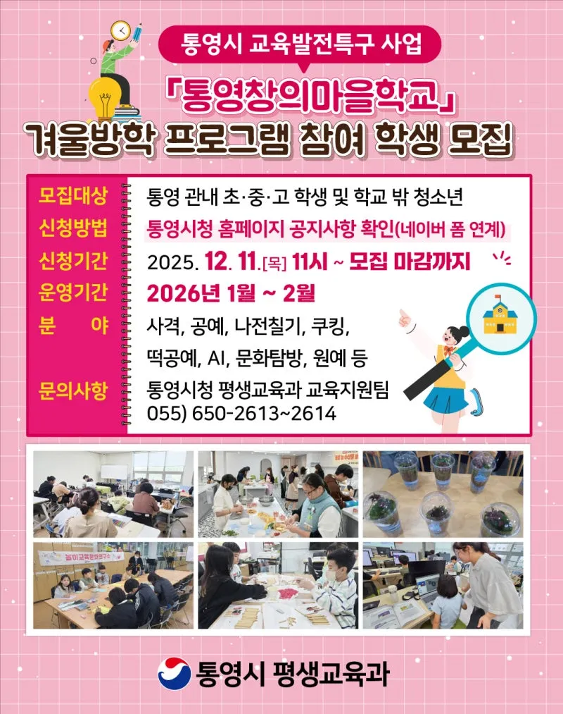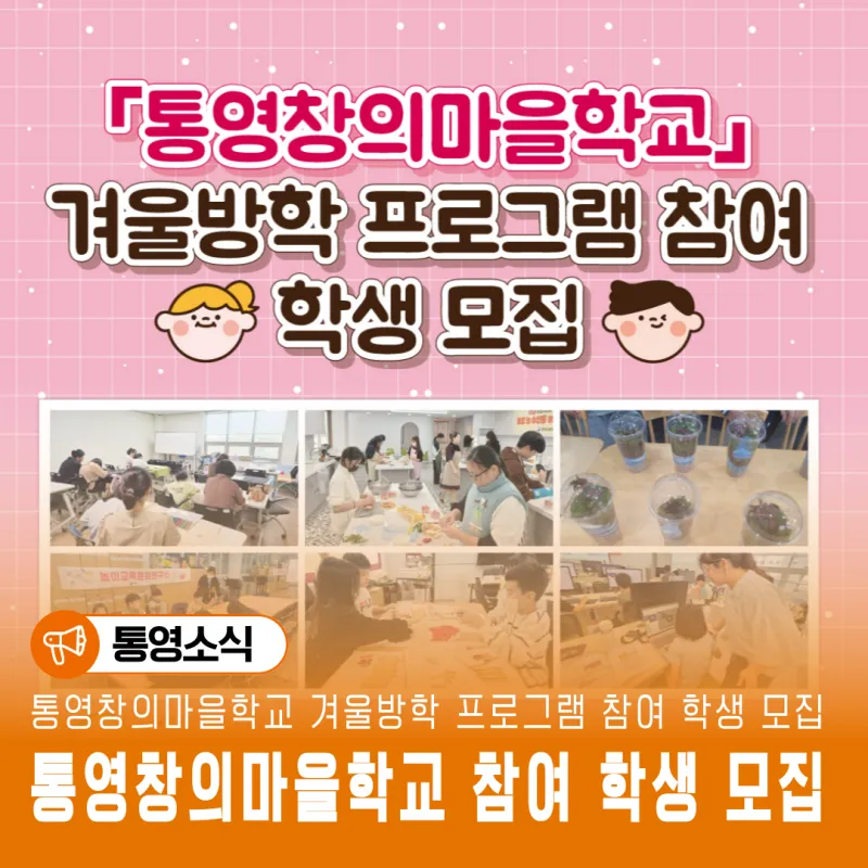 #통영창의마을학교 #통영교육 #통영겨울방학 #청소년프로그램 #통영체험 #창의교육 #겨울방학활동 #통영시청 #평생교육과 #통영청소년