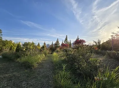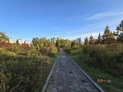 제가 좋아하는 야생화 길입니다. 지금은 가을이라 보이지 않지만, 봄이면 드문드문 작은 들꽃이 정말 예쁘게 피어나는 곳이에요. 자연스럽게 어우러진 작은 나무들 사이로 걸으면 마치 시골 오솔길을 걷는 느낌이랍니다. 몇 해지나니 이제 작은 숲으로 자리 잡은 것 같아요.