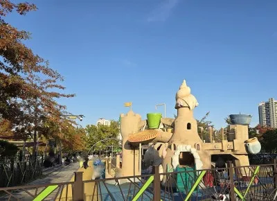 아이들이 너무너무 좋아하는 놀이터, 젊은 엄마 아빠 또는 할머니 할아버지와 놀이 나온 아이들의 표정이 마냥 행복해 보입니다.
