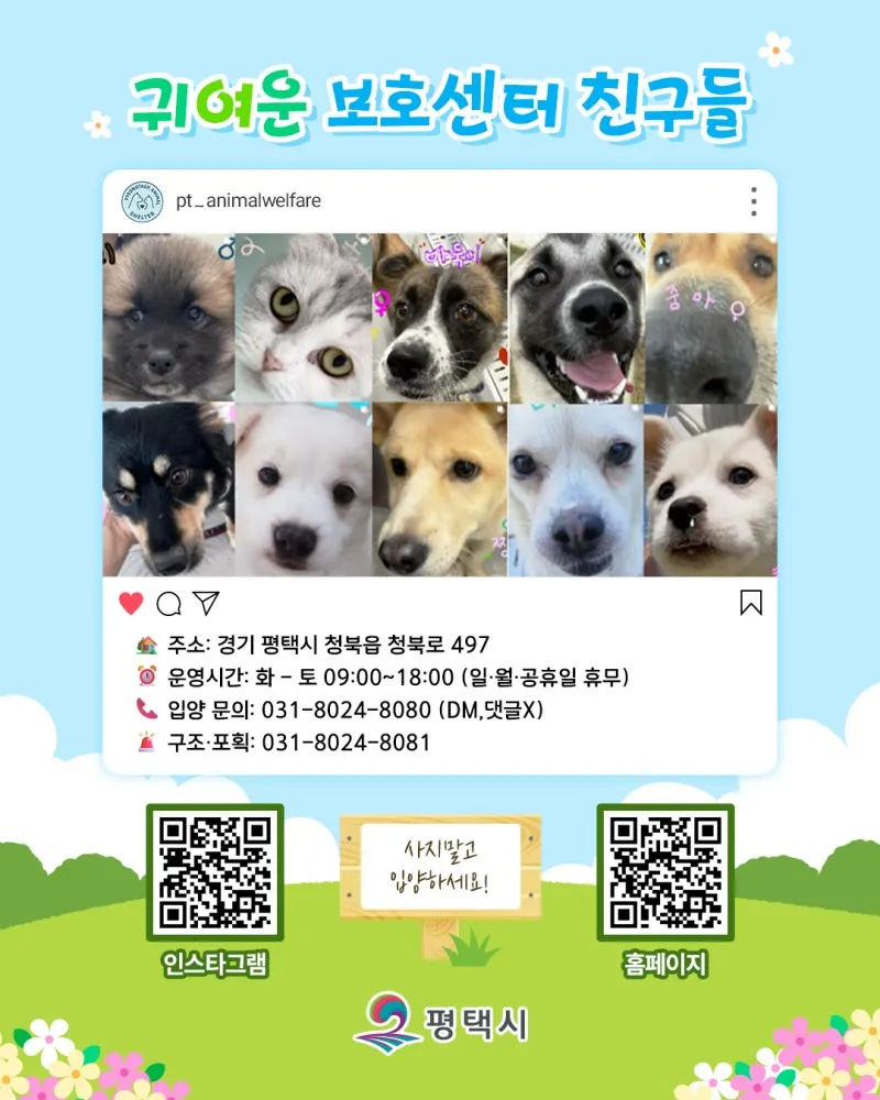 지금 바로 평택시 동물보호센터 인스타그램을 팔로우하시고,