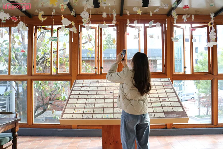 이번에 선보이는 작은 전시 ‘별별 마을, 별별 친구들’은 어린이들이 동심으로 꾸민 엽서가 모여 이루어진 결과물이다. 전시가 마련된, 돈의문역사관 아지오 2층 테라스 공간에서는 엽서와 함께 엽서 속 그림과 문장으로 꾸민 모빌을 감상할 수 있으며, 퍼즐 맞추기와 그림 그리기 체험도 가능하다.