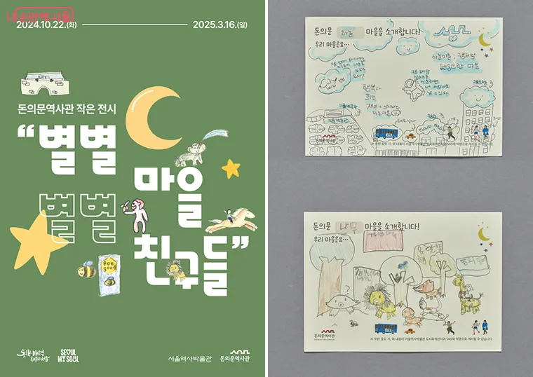 돈의문역사관에서 10월 22일부터 내년 3월 16일까지 ‘별별 마을, 별별 친구들’ 전시가 진행된다. 이번 전시는 2024년 온라인 교육 프로그램인 ‘돈의문 별별 마을’ 교육에 참가한 어린이가 꾸민 엽서 106점을 선보이는 자리다.