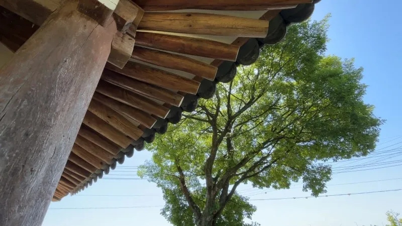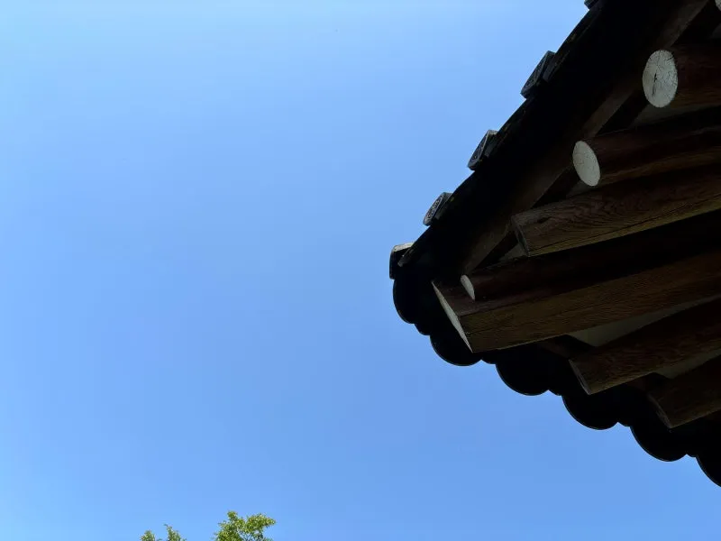 맑은 하늘과 고즈넉한 마을이 어우러져