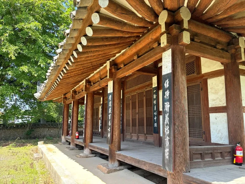 주춧돌 위 올려져 있는 나무 기둥들은