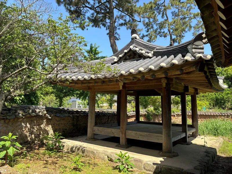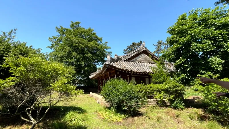 뒤뜰에 있는 연못가에 아담한 정자가 있는데