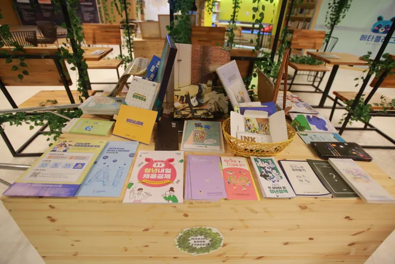 '와글와글 광장'에는 기부 도서 및 청년 정책에 대해 알 수 있는 다양한 팸플릿이 비치되어 있습니다.