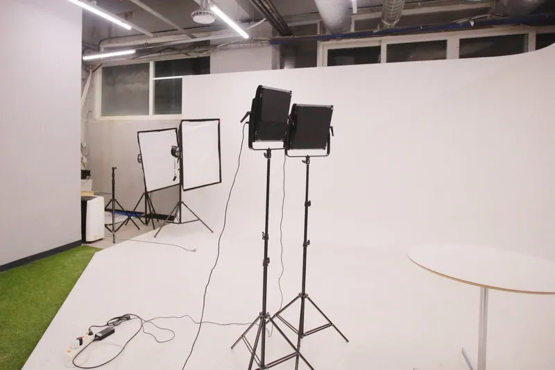 공유 스튜디오인 '비밀의 정원'입니다. 사진과 영상 콘텐츠 제작에 필요한 촬영용 조명, 호리존 스튜디오, 롤스크린 등으로 꾸며져 있습니다.