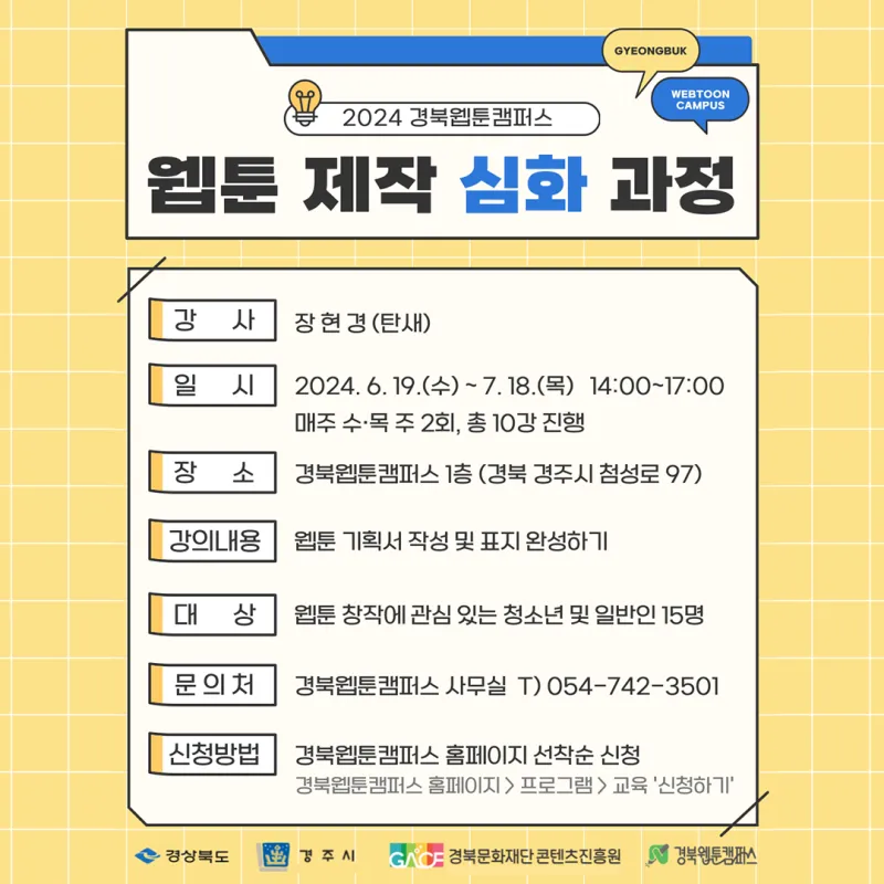 ‣ 문의 : 경북웹툰캠퍼스 사무실(☏ 054-742-3501)