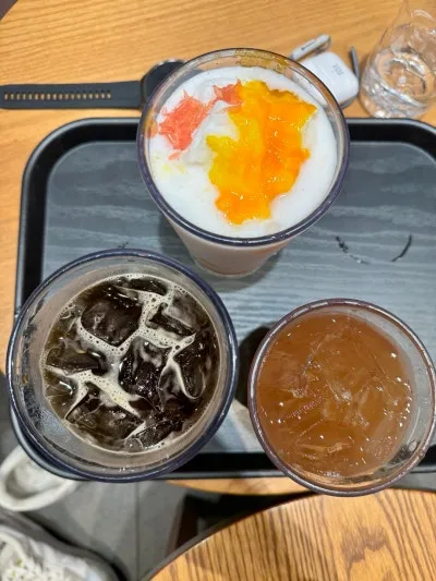 저희는 시원한 음료를 마셨습니다.