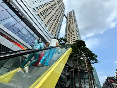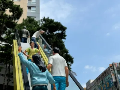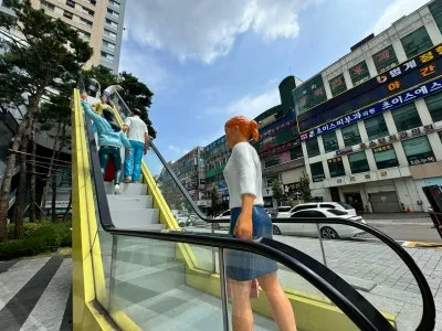 올라가는 모습의 작품이 전시되어 있네요.