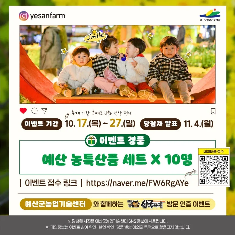 ※ 당첨된 사진은 예산농업기술센터 SNS 홍보에 사용됩니다.