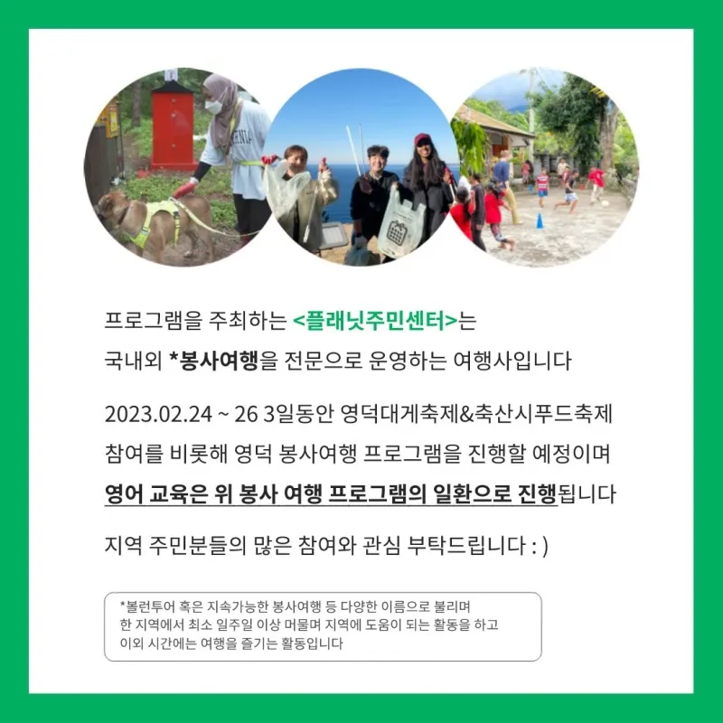 📢영덕 봉사여행에 참가하는 외국인들이 진행하는 영어&환경 수업!