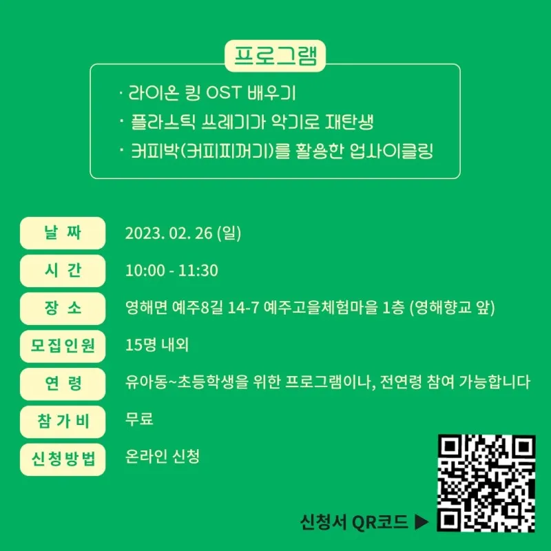 🔸연령 : 유아동~초등학생을 위한 프로그램이나, 전연령 참여 가능