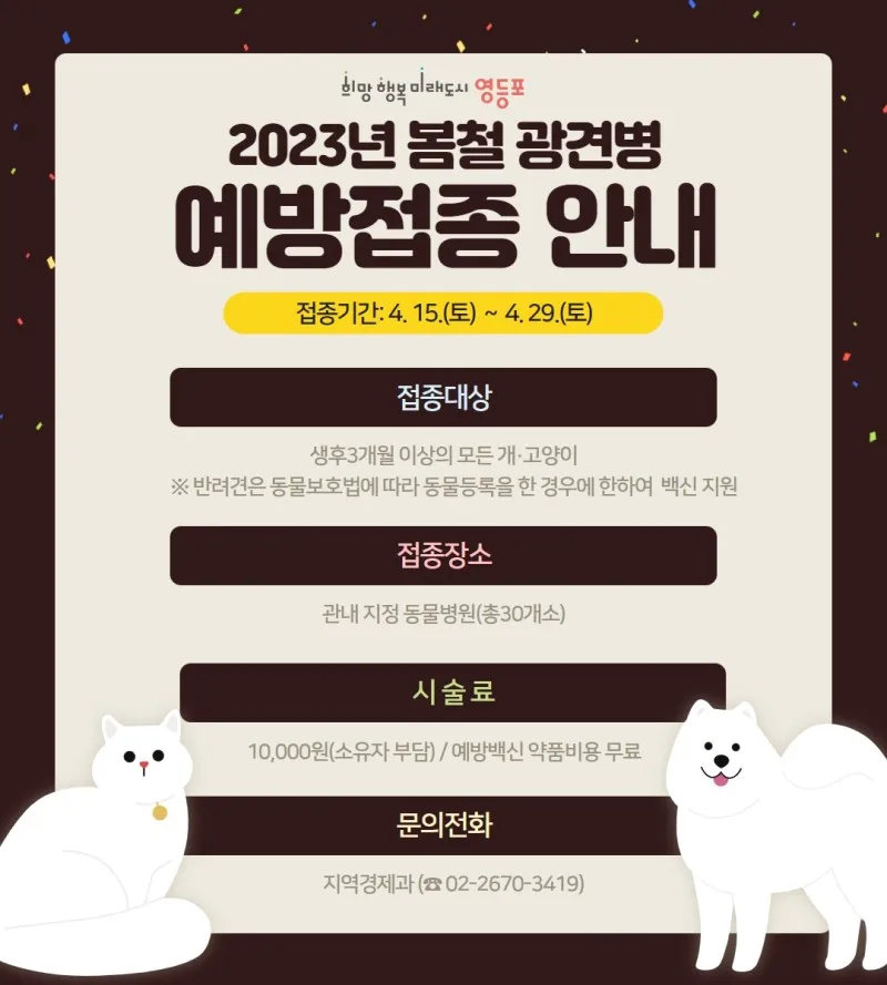 2023년 봄철 광견병 예방접종 안내(4. 15. ~ 4. 29.)