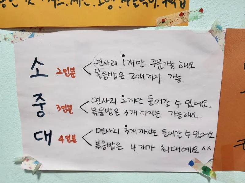 면사리추가는 하나만 할 수 있고 볶음밥은 2개까지가 최대입니다.