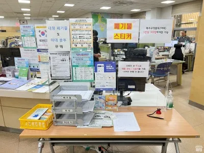 낮에 모습은 북적북적하진 않은듯했습니다. 대형폐기물 스티커부터 행정에 필요한 서비스를 제공하고 있으니 행정 업무처리도 하시고 다양한 정보도 얻어가면 좋을 것 같습니다.